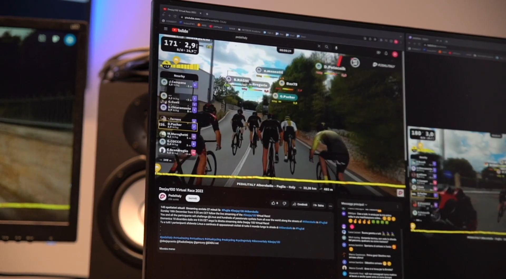 After the Emilia Bike Experience discovering Montechiarugolo and Pedemontana Parmense, we ended 2022 on a high note with the Radio Deejay 100 Virtual Race in Puglia, among olive groves, dry stone walls, ancient farms, and trulli. The virtual race, organized by Pedalitaly on the Rouvy platform and presented by Paul Groves and Veronica Bellandi Bulgari, was able to involve more than 700 athletes competing in a 32.36-kilometer route from Ostuni to Alberobello, accompanied by Alessandro Vanotti, Luca Gregorio, Wladimir Belli, and Linus, who was connected live from the Lenovo Space in Milan.